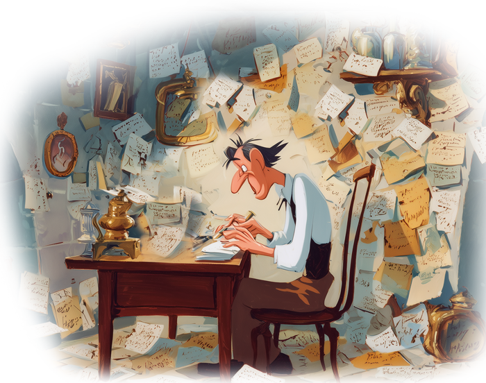 – Као што видите, сада и ја сликам. Како сам почео с тиме, питате се? Веома једноставно! Једног дана сам почео размишљати шта заправо значи сликати... Помешати мало црвеног и мало зеленог, те бацити на платно. Ништа лакше! Покушао сам. „Ужасно мазање! Масакрирање боја!” Тако су судили људи о мојој слици, кад ли приђе познати критичар Бен Симон и пита ко је ово насликао.
