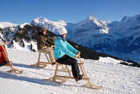 Бицикл за снег има дрвени оквир, две металне шине и управљач у предњем делу. У Оберланду га често користе, чак и поштари. Од 1995. године у тој области приређује се такмичење, трка за мушкарце и жене, на стази дугачкој 1,7 километара. У овој спортској дисциплини бицикл за снег може да достигне брзину и од 60 километара на час.