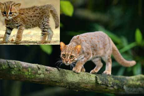 Најсићушнији представници мачака у дивљини на Азијском континенту (а највероватније и у свету) познати су под називом црвена пегава мачка (Prionailurus rubiginosus), сродник бенгалске мачке. Настањују Индију и Шри Ланку, а према подацима о њиховом броју из 2016. године, постоји велика опасност да убрзо постану угрожена врста.