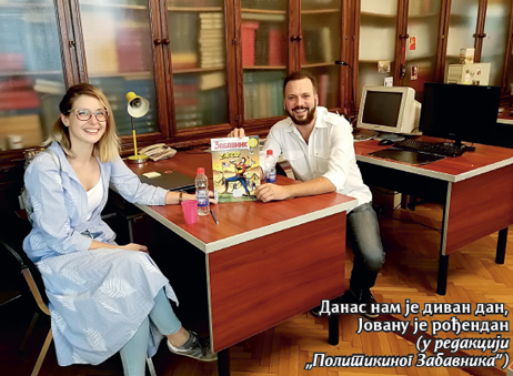 Недавно је у нашу редакцију стигло занимљиво писмо. Ужичанка из Београда Љиљана Тодоровић пожелела је да свом момку Јовану приушти поклон за тридесет пети рођендан. Нешто што је њему јако вредно, а с друге стране потпуно нематеријално. Како је Јован од детињства искрени приврженик „Политикиног Забавника”, то је помислила да би му најлепши поклон била посета нашој редакцији.
