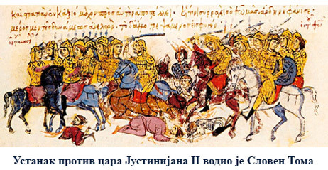 Крајем 7. века Арабљани су у својим освајањима допрли до византијског дела Мале Азије, настањеног и словенским живљем који је често дизао устанке против цара Јустинијана II. Очекујући помоћ од Арабљана, око 20.000 Словена побегло је из Јустинијанове војске, а 821. године под вођством Словена Томе, и уз помоћ Арабљана, дигли су велики устанак. Ове Словене, а касније и све остале, Арабљани су назвали – Сакалиби.