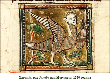 У древним временима многе људске особине, добре или лоше, приписиване су митским бићима која су их оличавала. Харпија је била отелотворење незајажљивости. Стари Грци описивали су је као полудевојку-полуптицу грабљивицу, брзу попут ветра, прождрљиву и незаситу. Вергилије, римски песник из 1. века пре наше ере, додао је да Харпија има лепо девојачко лице, а ружне руке, налик на куке, огромно птичје тело, и да је мори непрекидна глад.