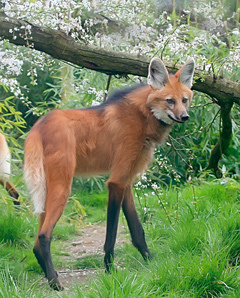 Познат и као „Магеланов пас” (Chrysocyon brachyurus), гривасти вук живи у јужноамеричким земљама, највише у Бразилу, северној Аргентини, Парагвају, Боливији и јужном Перуу. Омиљена станишта су му шуме са мочварама и високим растињем. Изгледом подсећа на лисицу, али са изразито дугим ногама, које му омогућавају да лакше опази плен преко високе траве и других биљака. Име је добио по упечатљивој гриви која му покрива рамена и која се накостреши кад осети да је угрожен. Исхрана гривастог вука је разноврсна, па лови мале и средње сисаре, птице, рибе, али једе и биљке попут шећерне трске, као и воће.