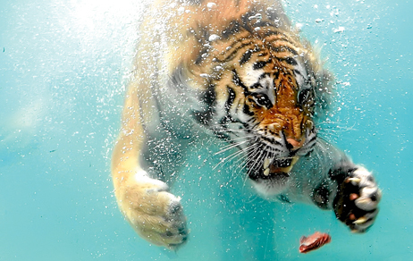 С обзиром на то да се дивље мачке убрајају међу најприлагодљивије животиње у природи, вода за њих није нарочита препрека. Тигар је у врху листе међу мачкама-пливачима. Верује се да је првобитно живео у југоисточној Азији где је владала изузетно влажна клима, па се често купао и хладио у потоцима и речицама. Понекад му је лакше и да савлада плен ако га натера у воду. Пуме и јагуари често морају да препливају реку или језеро да би стигли до ловишта, а то чине и лавови, нарочито они који живе у делти реке Окаванго у Боцвани. Њихов плен углавном су животиње које долазе на појило.