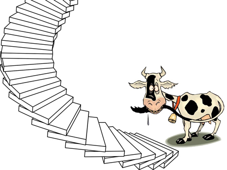 У томе нема ничег изненађујућег. Степеница нема у природи, оне су људски изум и прављене су тако да одговарају људским ногама. Нагиб већине степеница већи је од 35 степени, што би у случају брда било прилично стрмо. Тешко да би се крава и иначе спуштала стрмином нагиба 35 степени, а још кад је стаза исклесана у мале степенике прилагођене људским корацима, тек онда је то немогуће. Међутим, код степеница под блажим нагибом нема ничег тако загонетног што би спречило многе животиње да их користе.