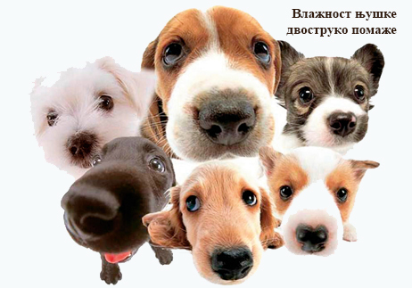 С обзиром на то да пси имају мање знојних жлезда него људи, хладне и влажне њушке један су од начина на који одржавају телесну температуру. Кроз нос излучују и слуз која их такође расхлађује и побољшава им чуло мириса. Пси су познати и по томе што лижу њушке како би одржавали хигијену (нарочито после оброка), па и то доприноси влажности. Осим носа, знојне железде налазе се и на шапама, а излучевине из њих помажу да им такозвани „јастучићи” остану мекани и да се не исушују после дуже шетње. Када су напољу, пси додатну влагу покупе са траве, лишћа и земље коју обавезно њушкају.