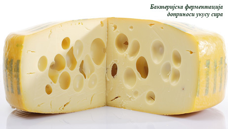Рупе у сиру мехури су угљен-диоксида које током ферментације произведу бактерије Probionibacter shermani. Међу произвођачима сира ове рупе зову се „очи” и њихова величина прописана је законом. Амерички прехрамбени прописи, на пример, захтевају да рупе имају промер између 1,75 и 2,06 центиметара. Бактеријска ферментација доприноси укусу сира. У швајцарским сиревима те бактерије су мртве када роба стигне до купца. Међутим, физичар Лен Фишер причао је анегдоту која му се десила с једним немачким сиром. Након што је појео неколико комадића, показали су му остатак сира под микроскопом – врвео је живим бактеријама које се ту додају због укуса.
