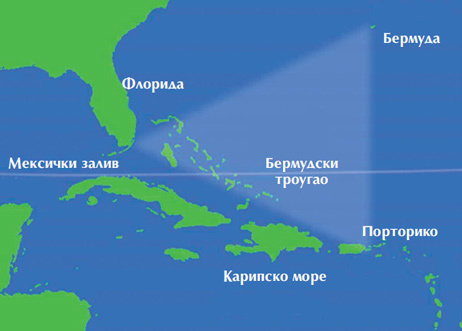 Између јужног обода Флориде, острва Бермуда и Порторико, свом ширином и дужином океана простире се такозвани Бермудски троугао, област за коју људи широм света верују да „гута” продове који туда плове, али и авионе. Неки иду толико далеко да тврде како на овом месту делују неке ванземаљске силе или некаква „црна рупа” која усисава немоћна пловила и њихове путнике.