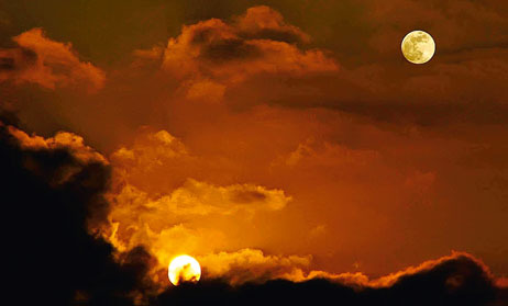 Сунце по дану, а Месец по ноћи, када се мало боље загледамо у небо, заиста делују као да су исте величине. Или, макар, да њихова разлика није нарочито велика.