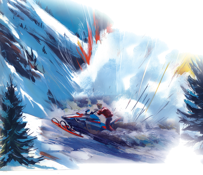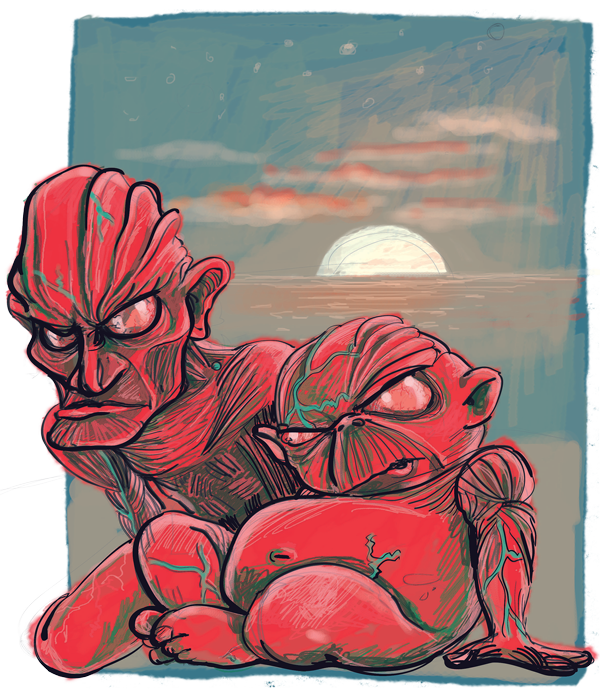 На самом корену ове сурле налазила се неизмерна маса црне руњаве косе – чак и више него што би се могло добити од крзна двадесет бизона. Излазећи из овог руна вертикално и пружајући се бочно, налазиле су се две блештаве кљове, не много различите од оних код дивљег вепра, али бескрајно већих димензија. Са сваке стране и паралелно са сурлом пружао се џиновски труп, дугачак десет или дванаест метара, као да је створен од чистог кристала и у облику савршене призме. Он је на најдивнији начин одбијао зраке залазећег Сунца. Сурла је обликовала клин с врхом према земљи. С ње су се ширила два пара крила – свако крило је било дугачко скоро деведесет метара – један пар се налазио изнад другог и оба су била густо прекривена металним крљуштима. Свака љуска те крљушти очигледно је имала три метра у пречнику. Приметио сам да су доњи и горњи ред крила повезани јаким ланцем.